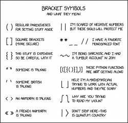 | current | 05:01, 4 July 2024 | 1,183 × 1,138 (228 KB) | TheusafBOT (talk | contribs) | == Summary == Small size can be found at https://imgs.xkcd.com/comics/bracket_symbols.png == Licensing == {{XKCD file}} |