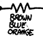63×58 @ 415,18 | A normal resistor, labeled with color code. Brown-Blue-Orange would be 16000 ohms. Resistor color codes are for reading the value on the physical device itself. They would not normally be shown on the circuit diagram, where it's much easier to just write the number, e.g. 16K. |