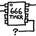 73×74 @ 615,55 | A chip. The normal timer is a "555". "666" would be the number of the beast in Rev. 13:18. The pin connected to "?" is the CTRL pin on a normal 555 timer, which would typically be connected to ground (via a decoupling capacitor) if used at all; the implication here seems to be that it would be connected directly to Hell itself. |