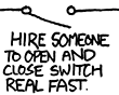 - A switch labeled "Hire someone to open and close switch real fast."